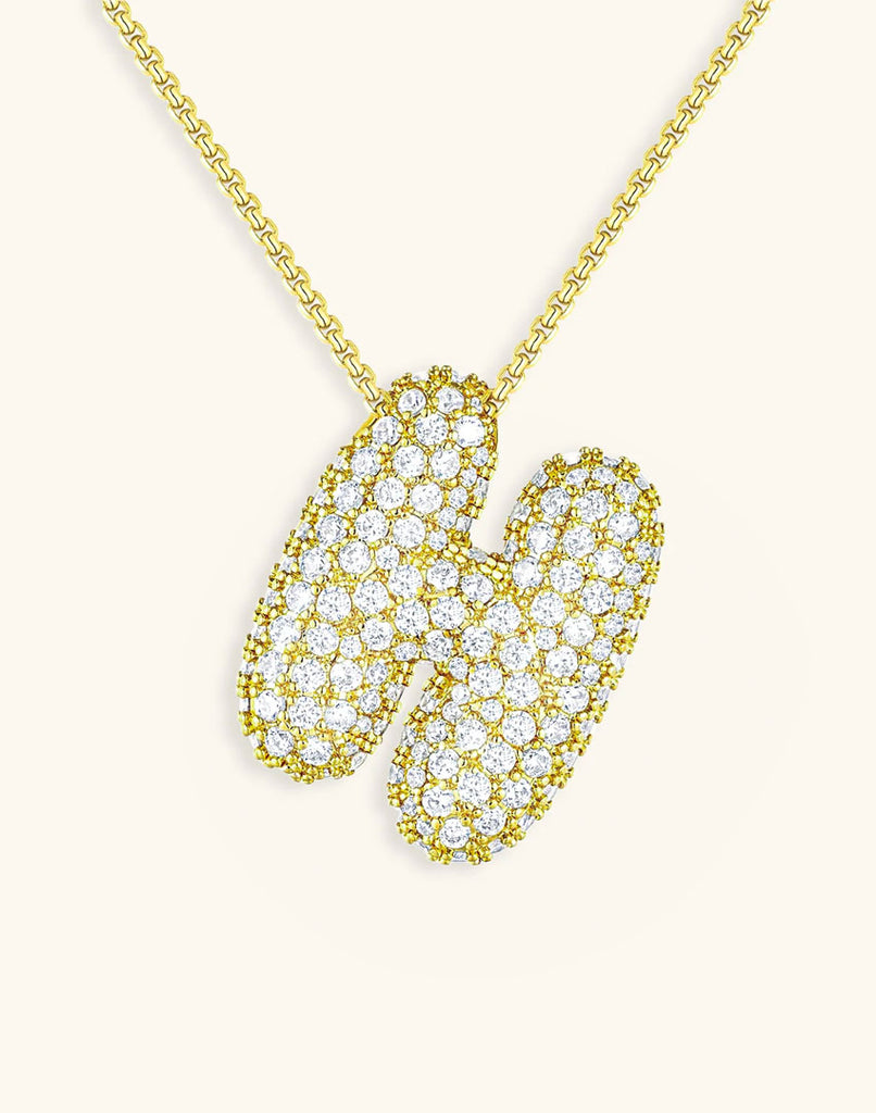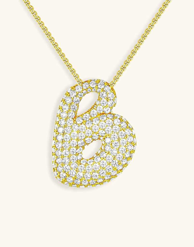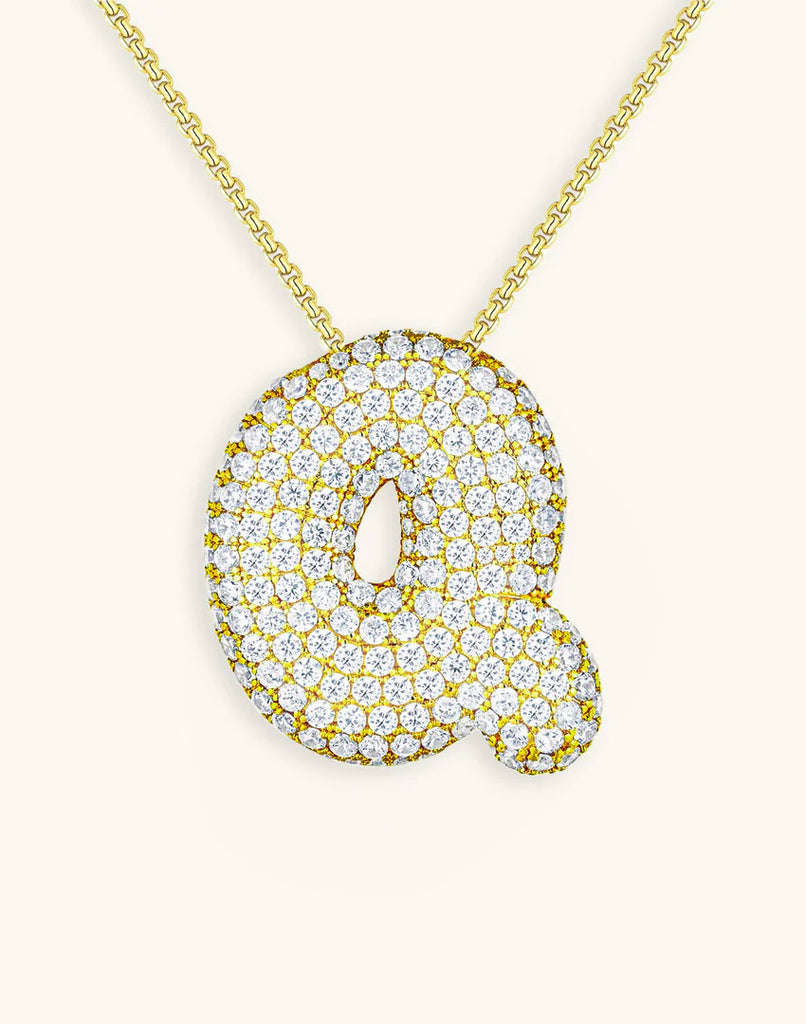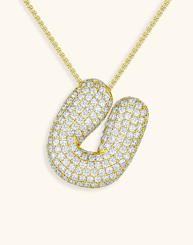 The Bubble Diamond Initial Necklace is a stunning gold piece that effortlessly brings a personalized luxury and charm to any outfit, casual or formal. Featuring a dazzling diamond simulant letter, it symbolizes a loved one, a cherished memory, or your own unique identity. Designed to be waterproof, hypoallergenic, and ethically sourced, it’s a meaningful and lasting accessory.