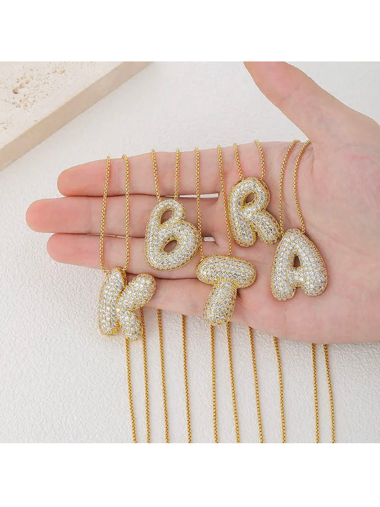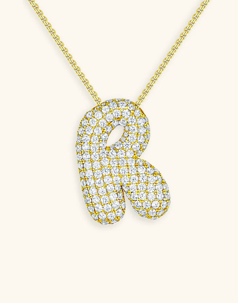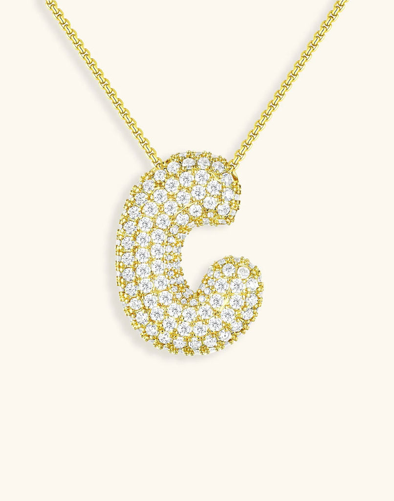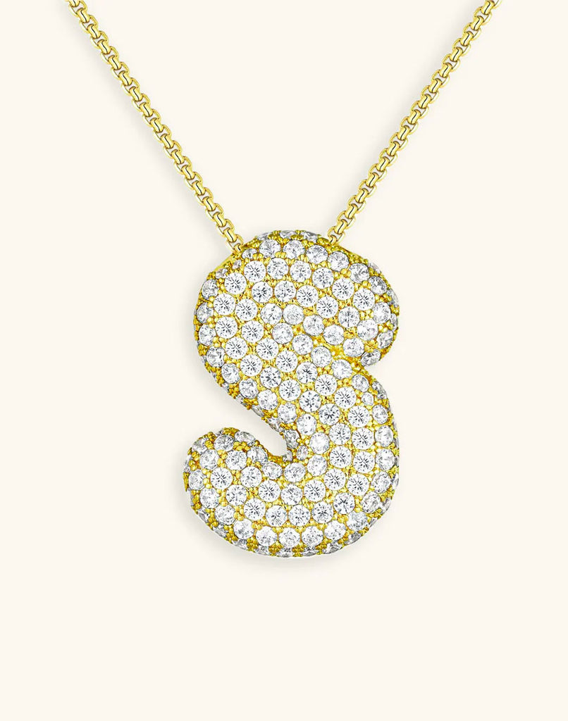 The Bubble Diamond Initial Necklace is a stunning gold piece that effortlessly brings a personalized luxury and charm to any outfit, casual or formal. Featuring a dazzling diamond simulant letter, it symbolizes a loved one, a cherished memory, or your own unique identity. Designed to be waterproof, hypoallergenic, and ethically sourced, it’s a meaningful and lasting accessory.