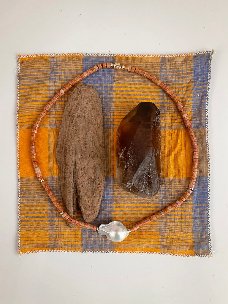 PLEASE NOTE: Baroque pearls are celebrated for their uniqueness. No two baroque pearls are exactly alike and every Heishi Necklace will showcase a (very slightly) different pearl.