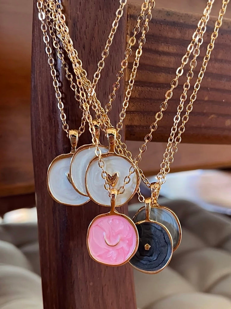 Elevate your style (and vibe) with this cosmic-inspired necklace and let your personality shine like the stars! This delicate gold STELLAR Enamel Pendant Necklace features a fine, sparkly rose gold chain adorned with a pearlescent pink enamel eclipse moon motif, creating a whimsical yet sophisticated look. Perfect for everyday wear or adding a dainty, mystical touch to your evening look, this necklace brings a subtle, celestial elegance to any outfit.