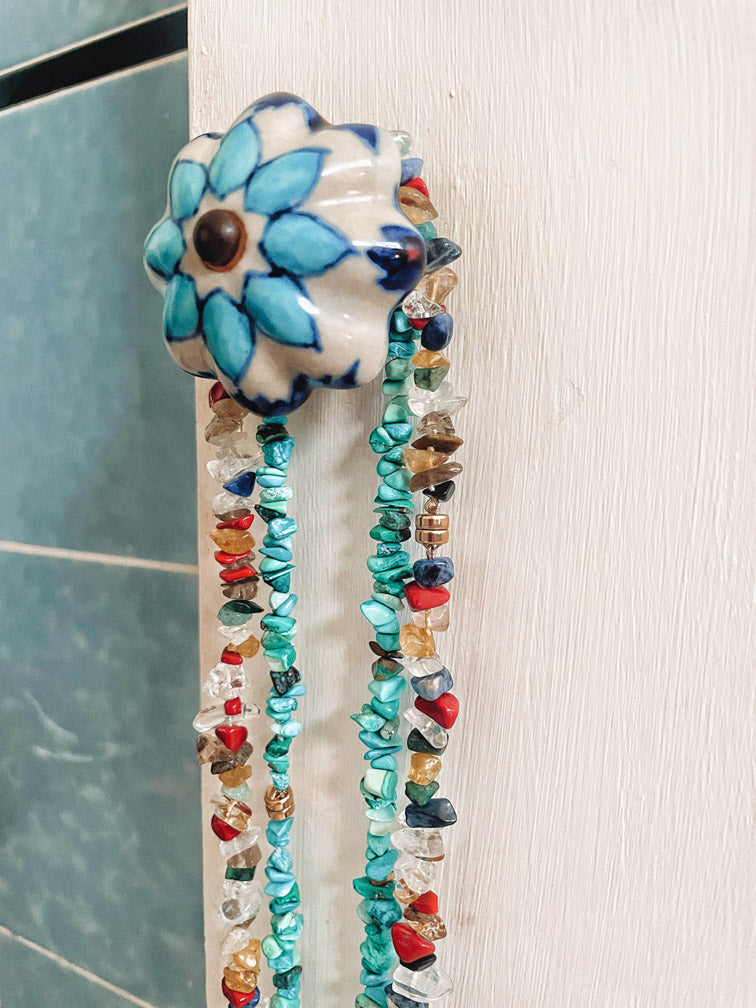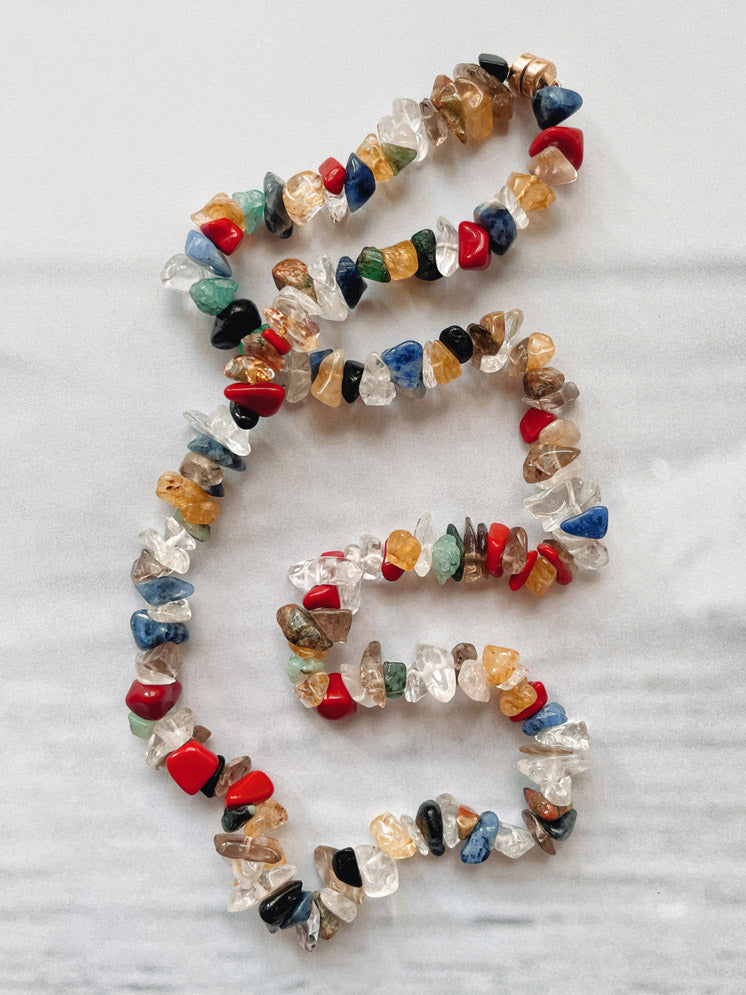 Bohemian elements are at the forefront of the fine jewellery game, an aesthetic reflected in this beautiful necklace, which holds within it the healing properties of semi-precious crystals.