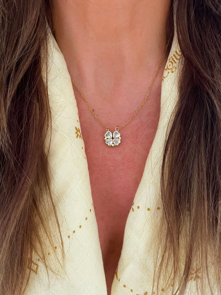 CLOVER Pendant Necklace (Clear Zircon) • NEW