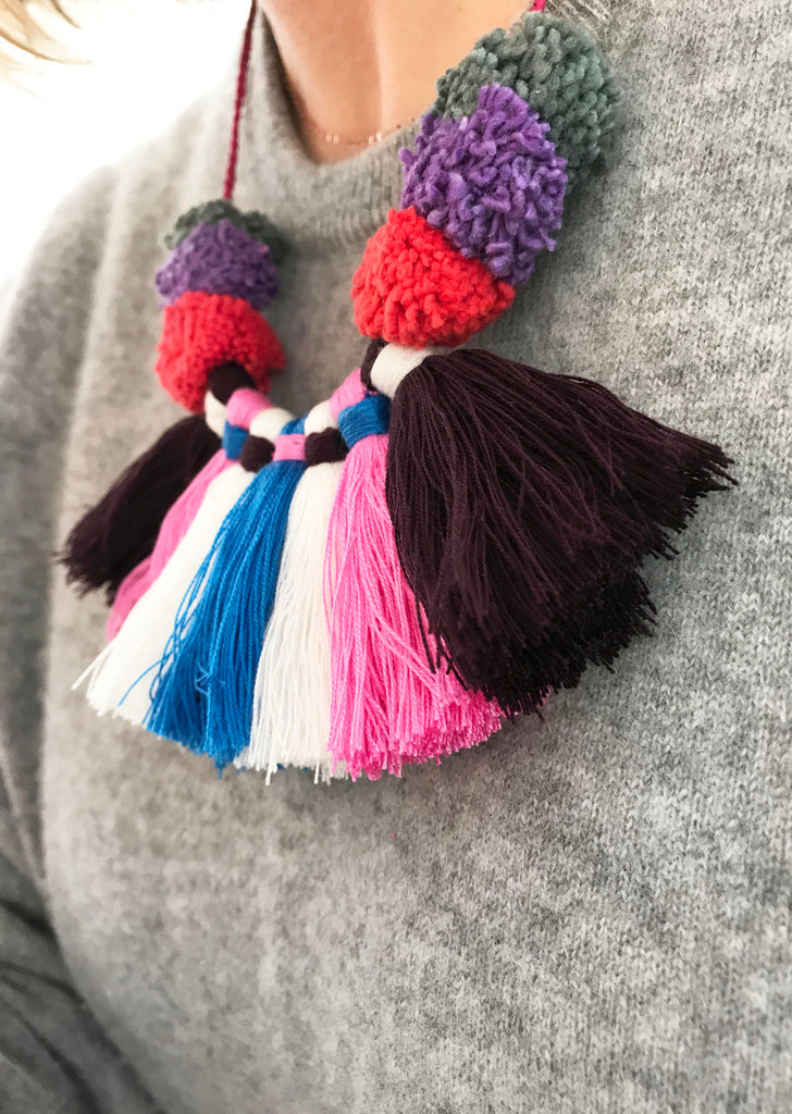 FLAMENCO Pompom Tassel Necklace (Multi)